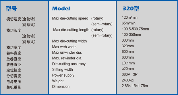ZM-320型間歇.全輪轉(zhuǎn)商標(biāo)模切機(jī)是我公司獨(dú)立研發(fā)的集光、機(jī)、電于一體的新型模切、分條設(shè)備。該機(jī)整套控制系統(tǒng)及伺服系統(tǒng)采用德國、廠家、新產(chǎn)品,整機(jī)由六個(gè)部分組成:放卷、糾偏、覆膜、精確套準(zhǔn)模切、分條、成品、復(fù)卷。